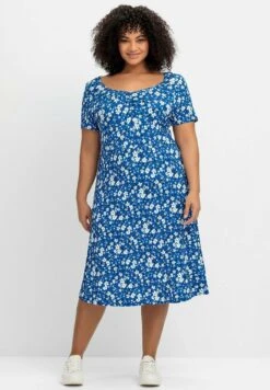 Sheego Jerseykleid – Blau Gemustert